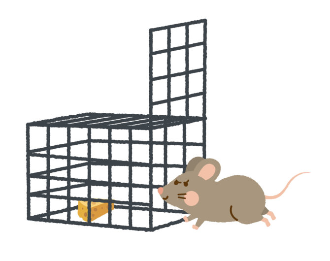 大きく「踏み板式罠」、「餌吊り下げ式罠」などがあり、トリガーとなる行動により箱の入り口が閉まる仕組みのものになります。
